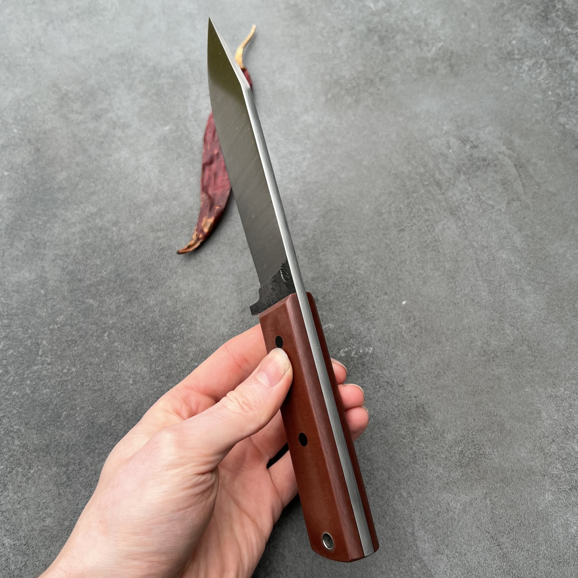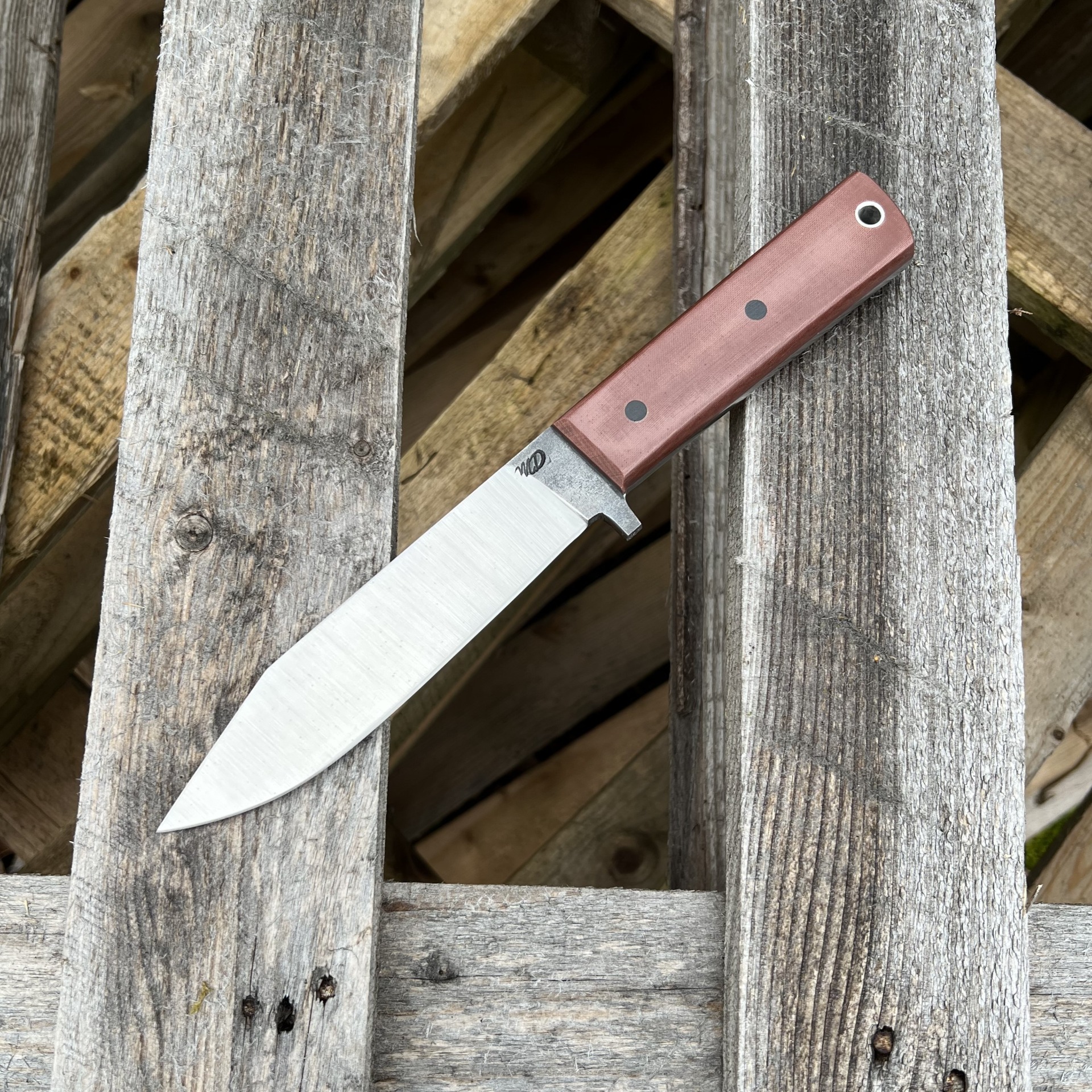 Tento nůž jsem navrhl pro ty, kteří v divočině upřednostňují řezný výkon a absolutní spolehlivost. Ručně kovaná čepel z oceli 80CRV2 vychází z prověřené geometrie nožů Kephart a je opatřena čočkovitým výbrusem. Ten dává ostří neuvěřitelnou sílu při zachování vysoké řezivosti – nůž se v materiálu nesvírá a hravě si poradí s náročnými úkoly při táboření i lovu. Je to nástroj pro lovce, bushcraftery a znalce, kteří ocení živý charakter kované uhlíkové oceli a její přirozenou patinu, která s každou výpravou vypráví nový příběh.
