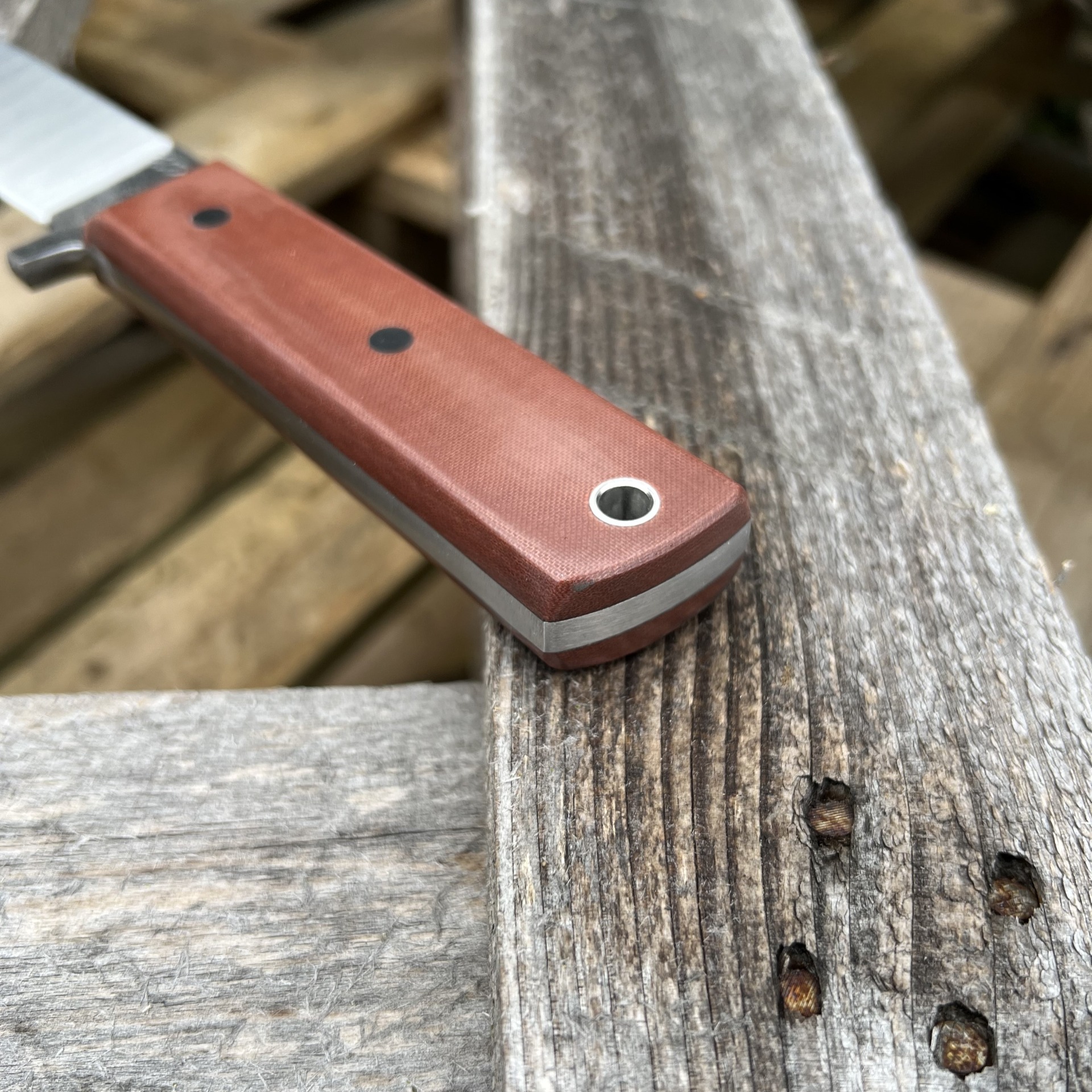 Konstrukce: Full-tang (ocel prochází celou rukojetí pro maximální pevnost a odolnost)