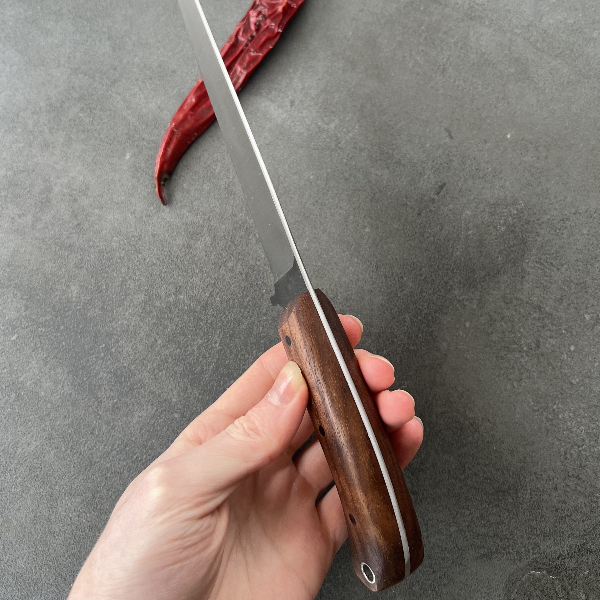 Tento nůž jsem navrhl pro nejnáročnější úkoly při zpracování masa. Úzká, tuhá čepel vám umožní precizní práci kolem kostí, chrupavek a šlach, aniž byste plýtvali surovinou. Je to nástroj pro řezníky, lovce i domácí nadšence, kteří chtějí mít zpracování masa plně pod kontrolou.