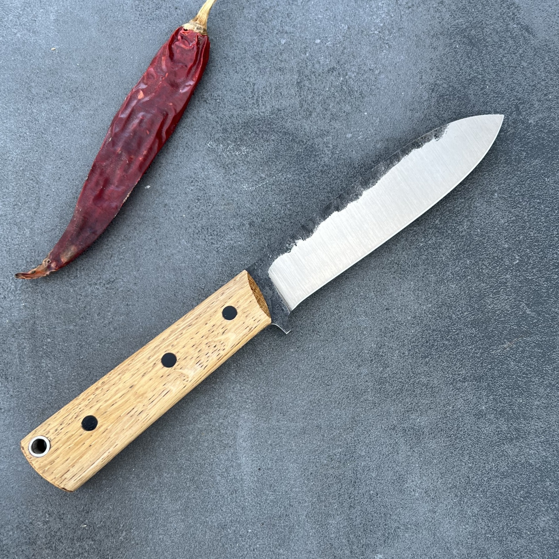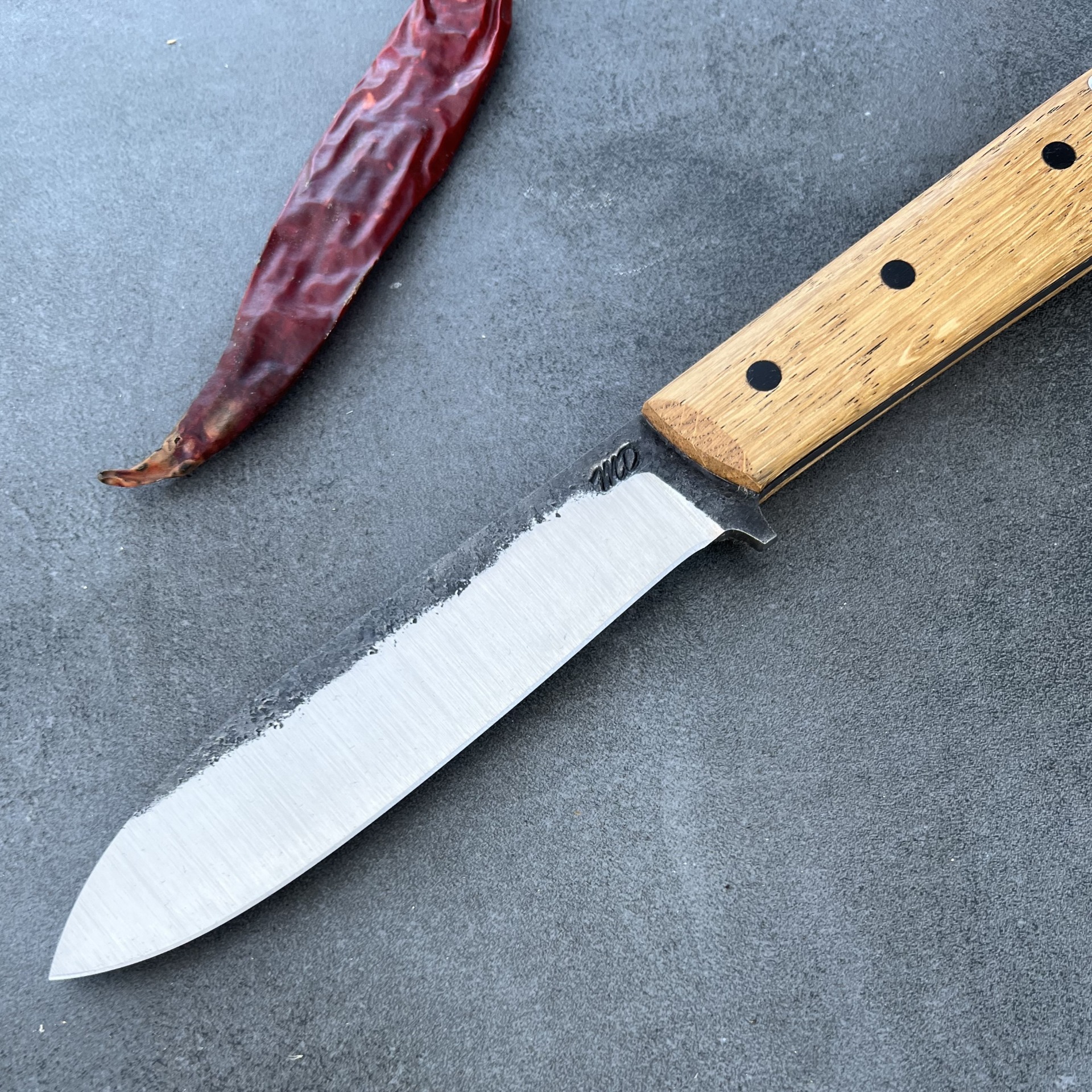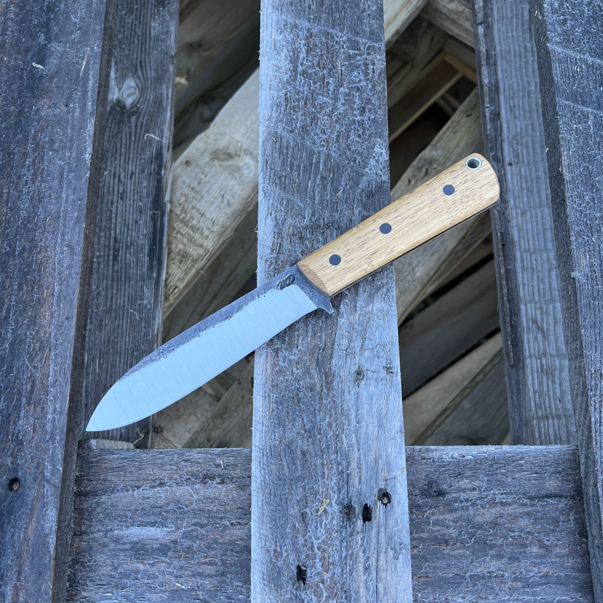 Tento nůž jsem navrhl pro ty, kteří v divočině upřednostňují řezný výkon a absolutní spolehlivost. Ručně kovaná čepel z oceli 80CRV2 vychází z prověřené geometrie nožů Kephart a je opatřena čočkovitým výbrusem. Ten dává ostří neuvěřitelnou sílu při zachování vysoké řezivosti – nůž se v materiálu nesvírá a hravě si poradí s náročnými úkoly při táboření i lovu. Je to nástroj pro lovce, bushcraftery a znalce, kteří ocení živý charakter kované uhlíkové oceli a její přirozenou patinu, která s každou výpravou vypráví nový příběh.