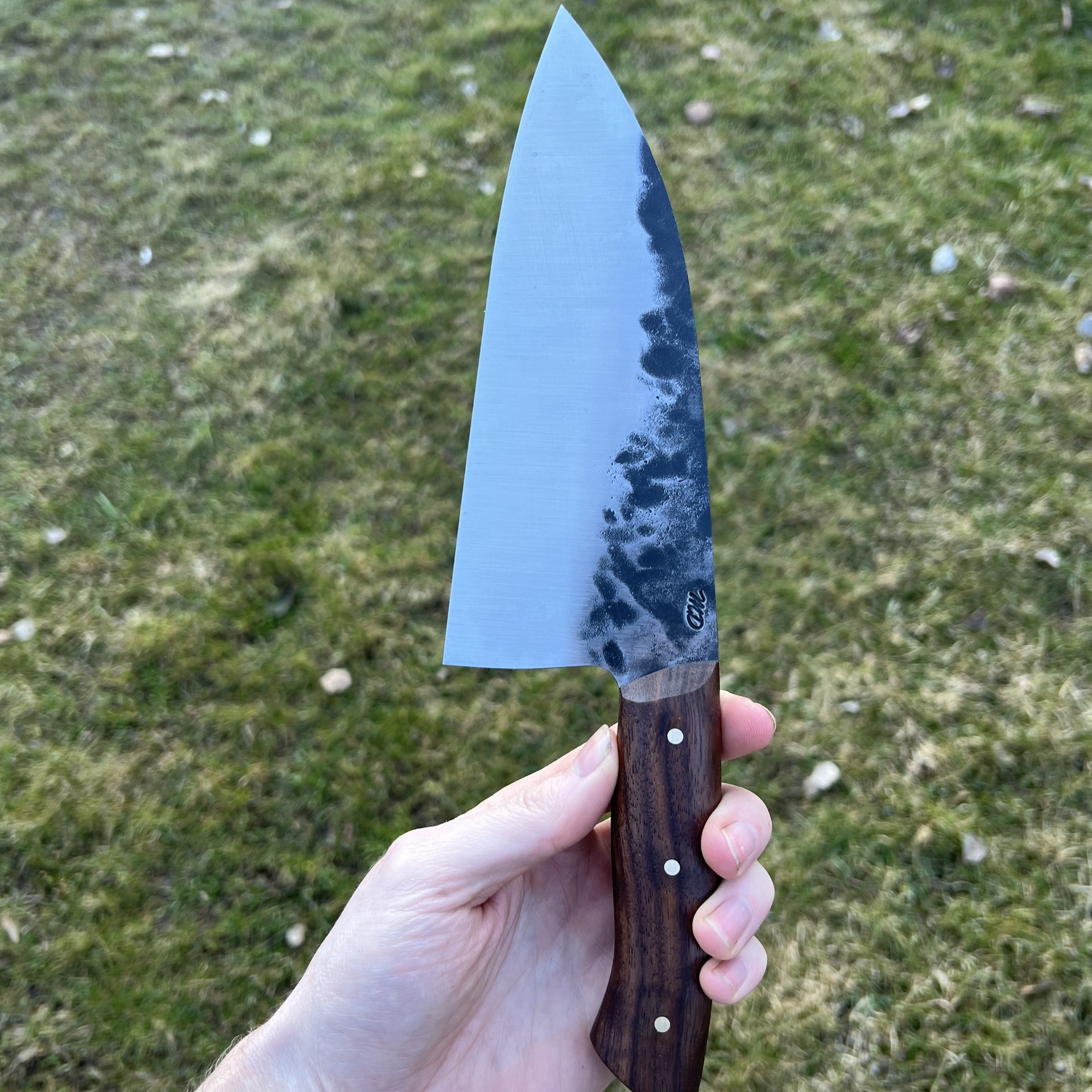 Tento nůž jsem navrhl pro maximální využití při každodenní práci v kuchyni. Vysoká a úzká čepel z oceli 14260 vám umožní provádět dokonale čisté řezy skrz zeleninu, maso i ryby, aniž byste ztráceli kontrolu nad hloubkou řezu. Je to nástroj pro kuchaře, gurmány i domácí nadšence, kteří vyžadují ostrost a chtějí mít každý pohyb nože po prkýnku plně pod kontrolou.