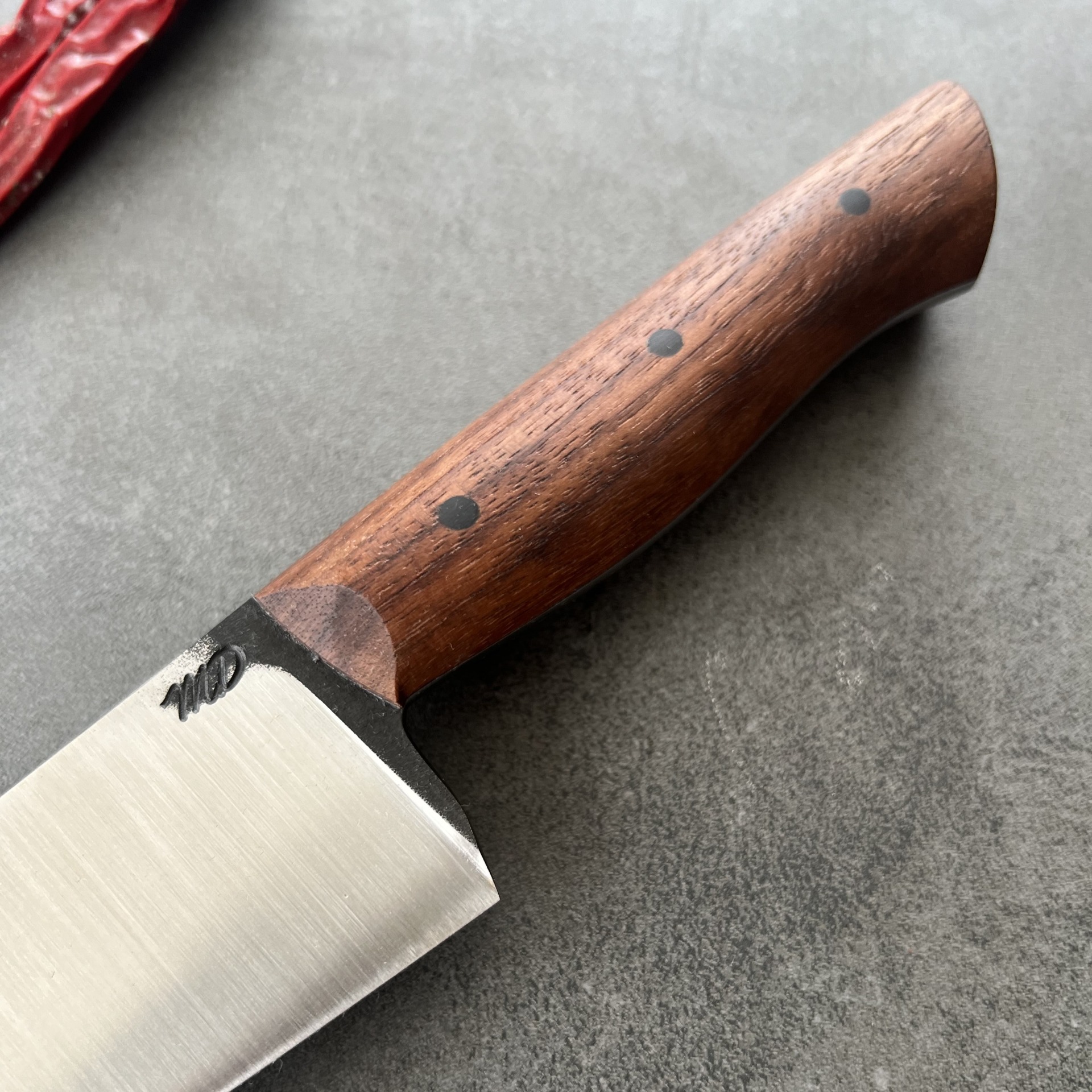 Tento nůž jsem navrhl pro maximální využití při každodenní práci v kuchyni. Široká a pevná čepel z oceli AEB-L vám umožní provádět dokonale čisté řezy skrz zeleninu, maso i ryby, aniž byste ztráceli kontrolu nad hloubkou řezu. Je to nástroj pro kuchaře, gurmány i domácí nadšence, kteří vyžadují ostrost a chtějí mít každý pohyb nože po prkýnku plně pod kontrolou.
