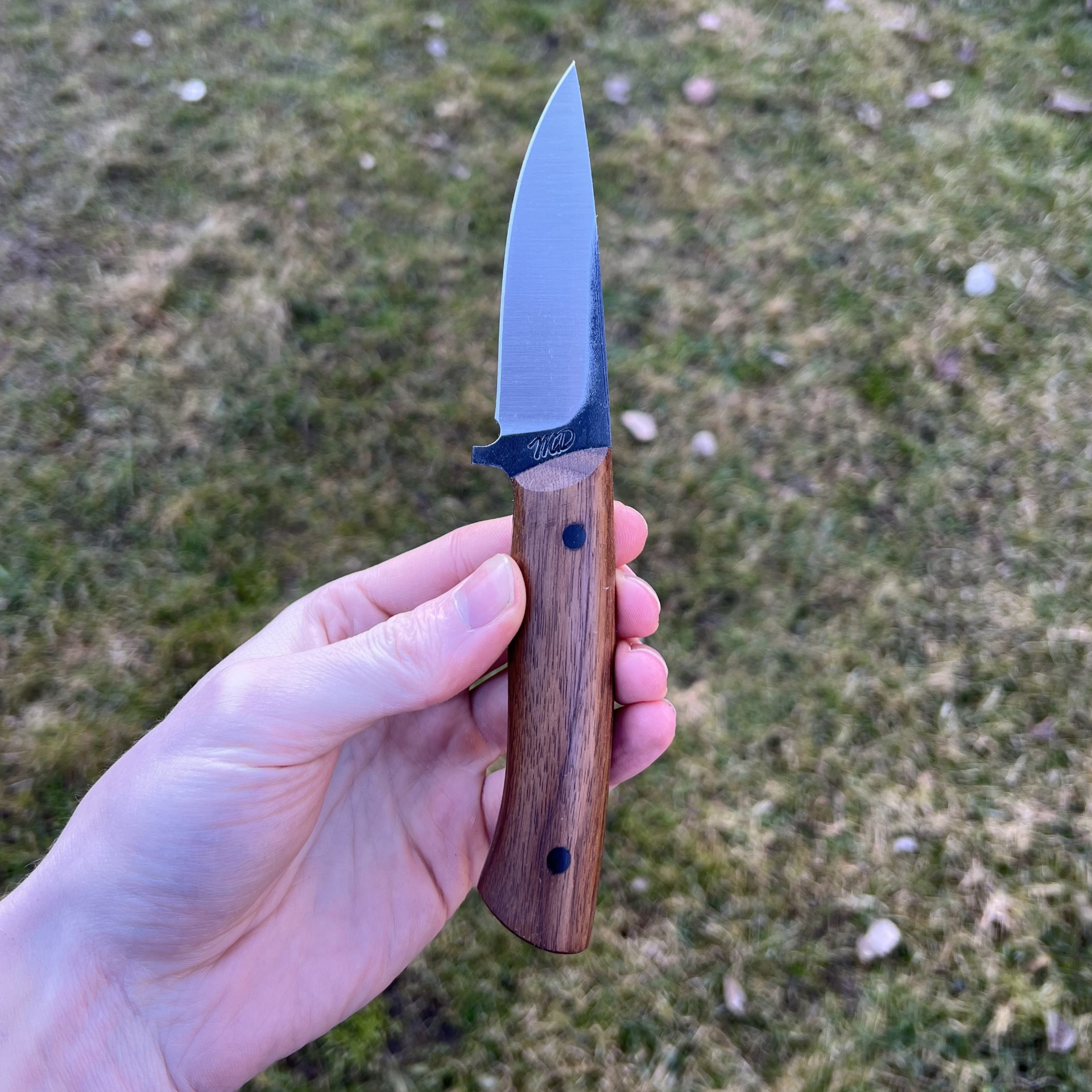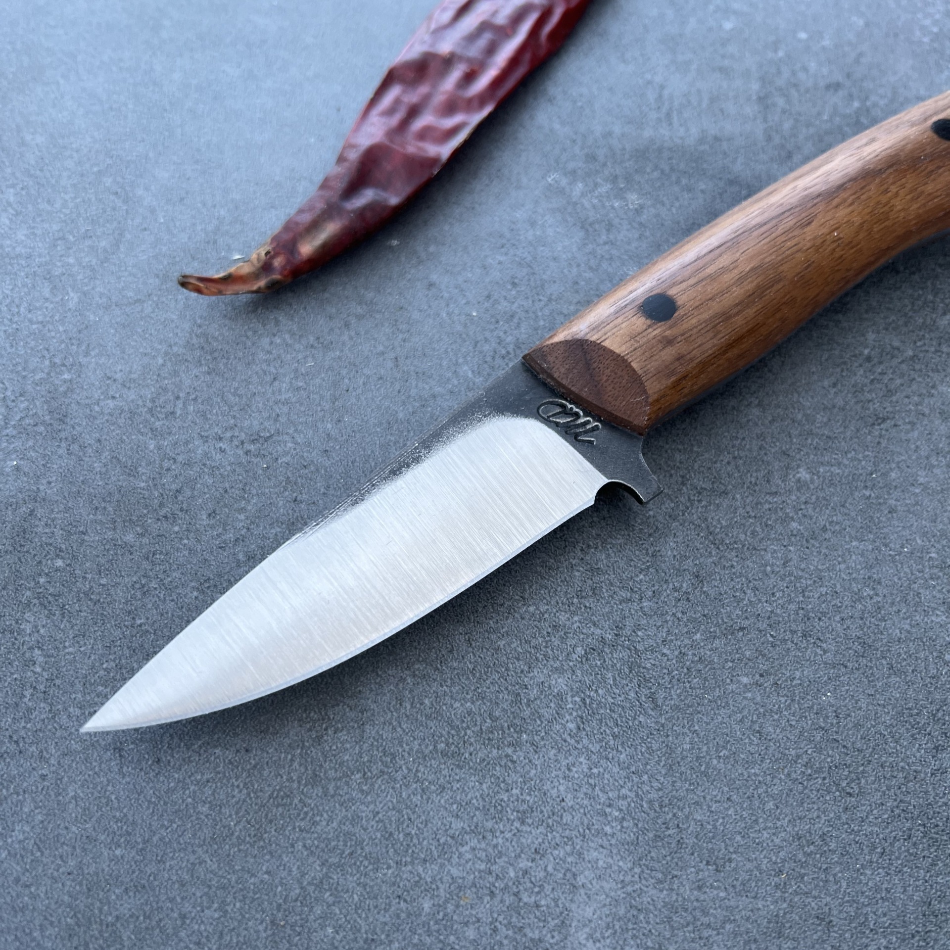 Materiál rukojeti: Ořech napuštěný tungovým olejem a včelím voskem