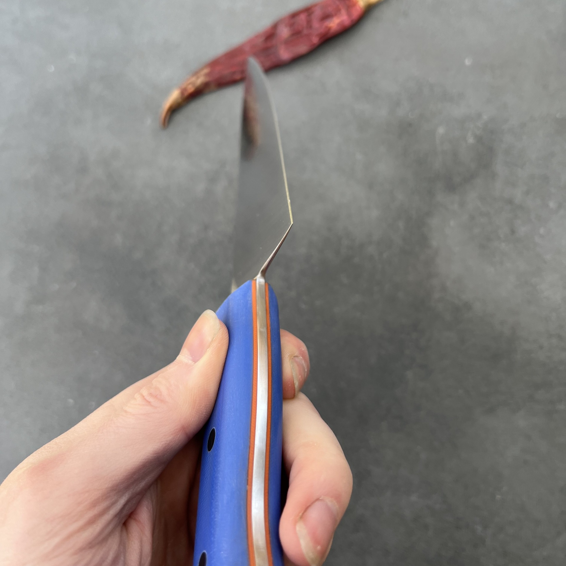 Tento nůž jsem navrhl pro maximální využití při každodenní práci v kuchyni. Široká a pevná čepel z oceli z prémiové oceli AEB-L vám umožní provádět dokonale čisté řezy skrz zeleninu, maso i ryby, aniž byste ztráceli kontrolu nad hloubkou řezu. Je to nástroj pro kuchaře, gurmány i domácí nadšence, kteří vyžadují ostrost a chtějí mít každý pohyb nože po prkýnku plně pod kontrolou.