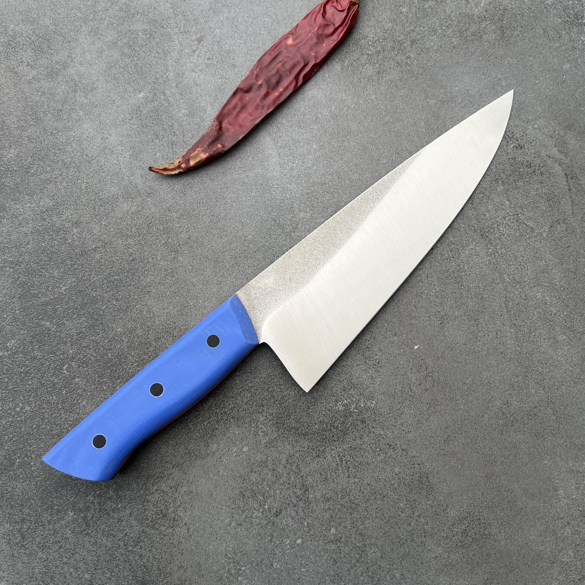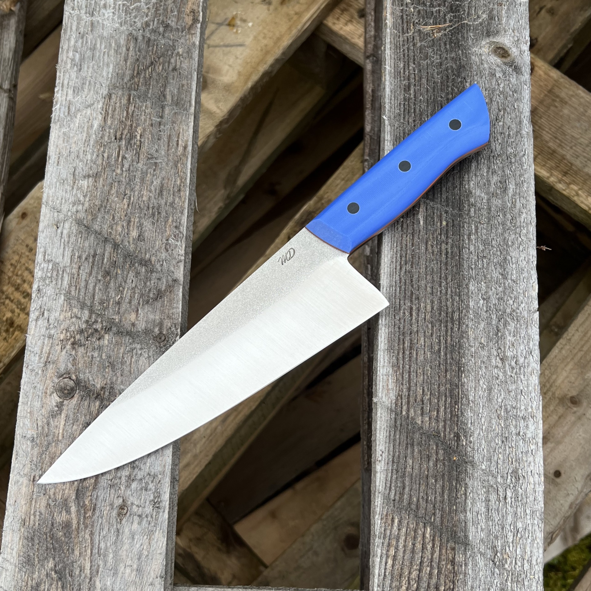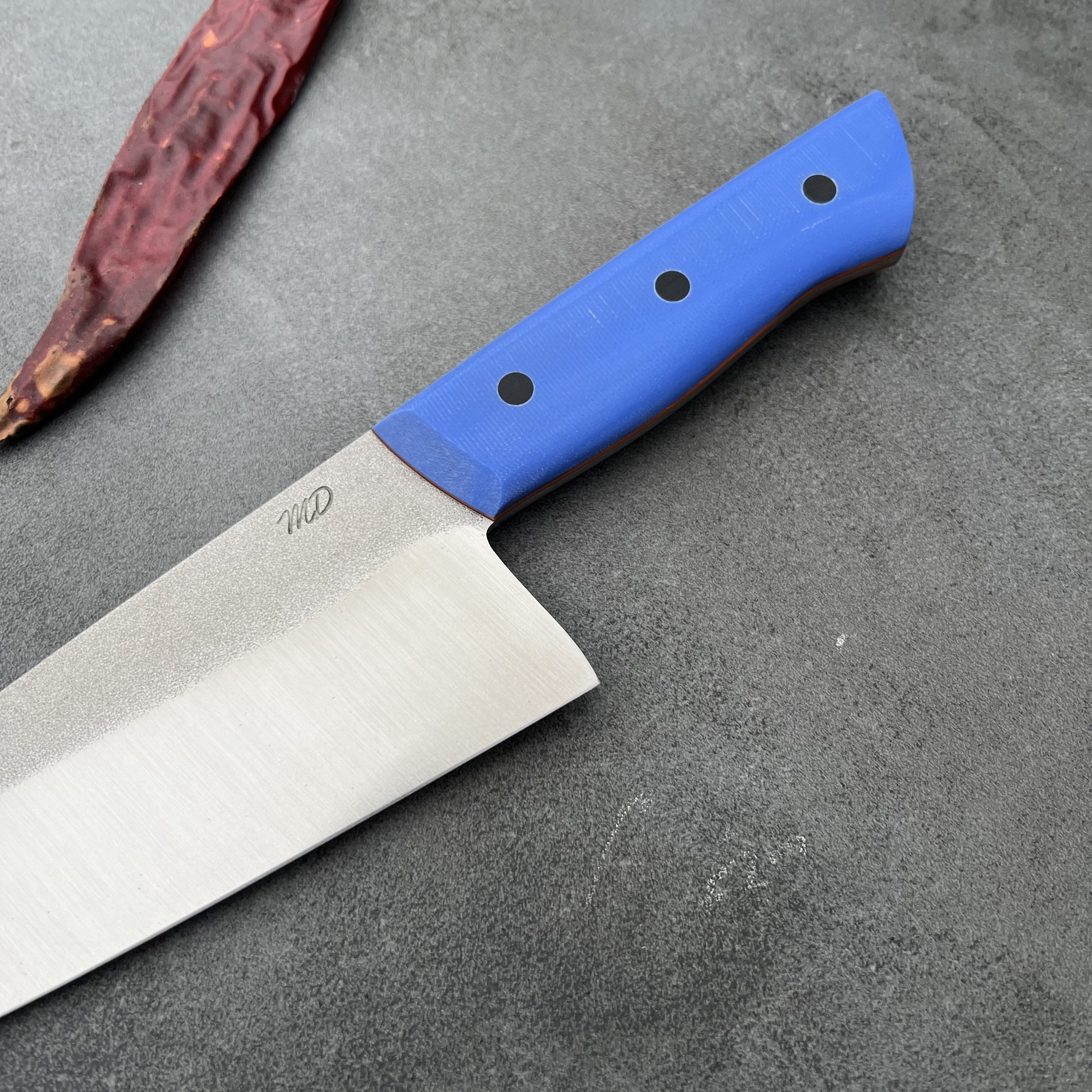 Tento nůž jsem navrhl pro maximální využití při každodenní práci v kuchyni. Široká a pevná čepel z oceli ze prémiové oceli N690 vám umožní provádět dokonale čisté řezy skrz zeleninu, maso i ryby, aniž byste ztráceli kontrolu nad hloubkou řezu. Je to nástroj pro kuchaře, gurmány i domácí nadšence, kteří vyžadují ostrost a chtějí mít každý pohyb nože po prkýnku plně pod kontrolou.