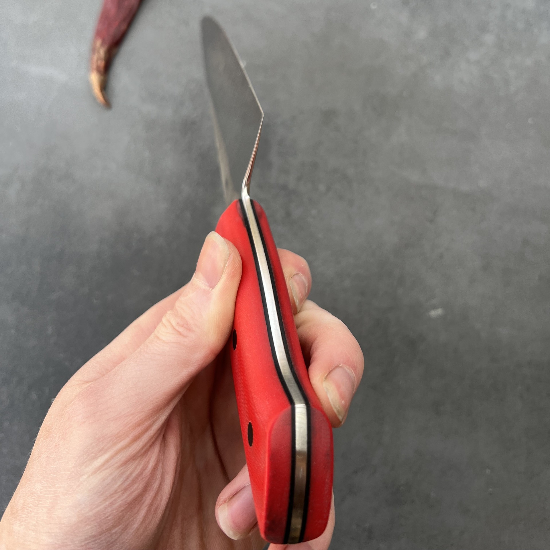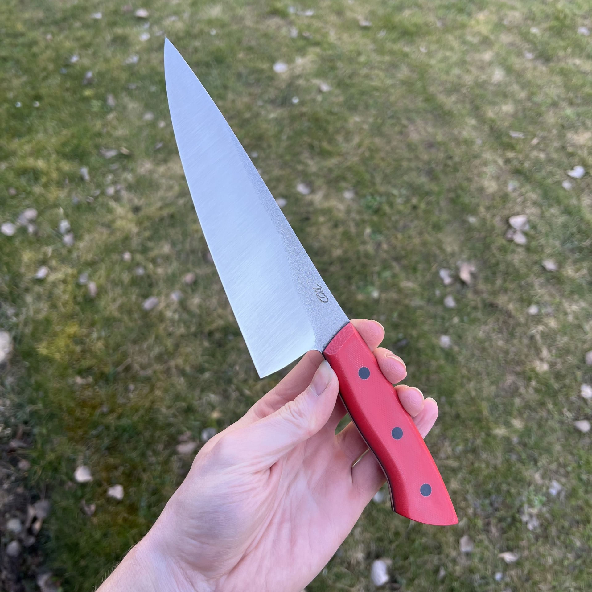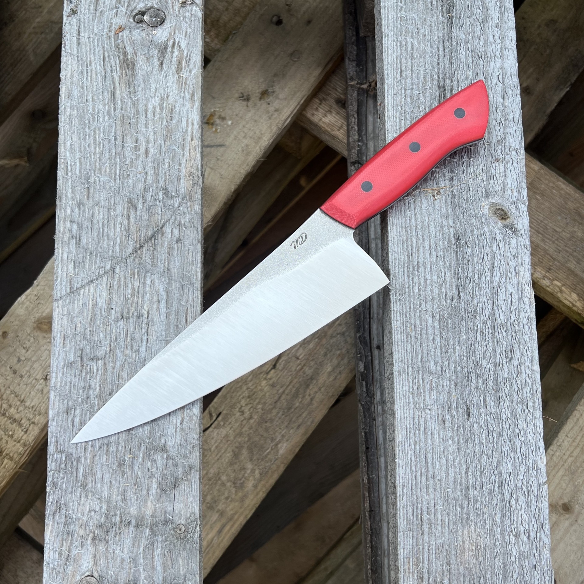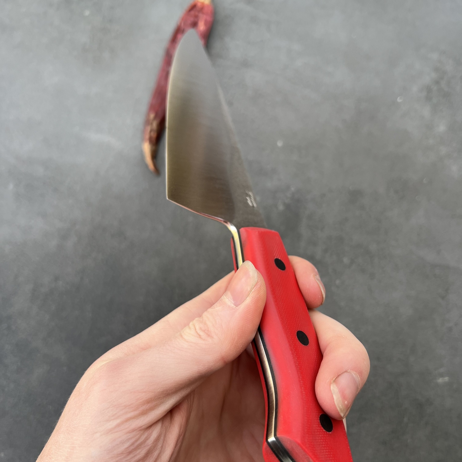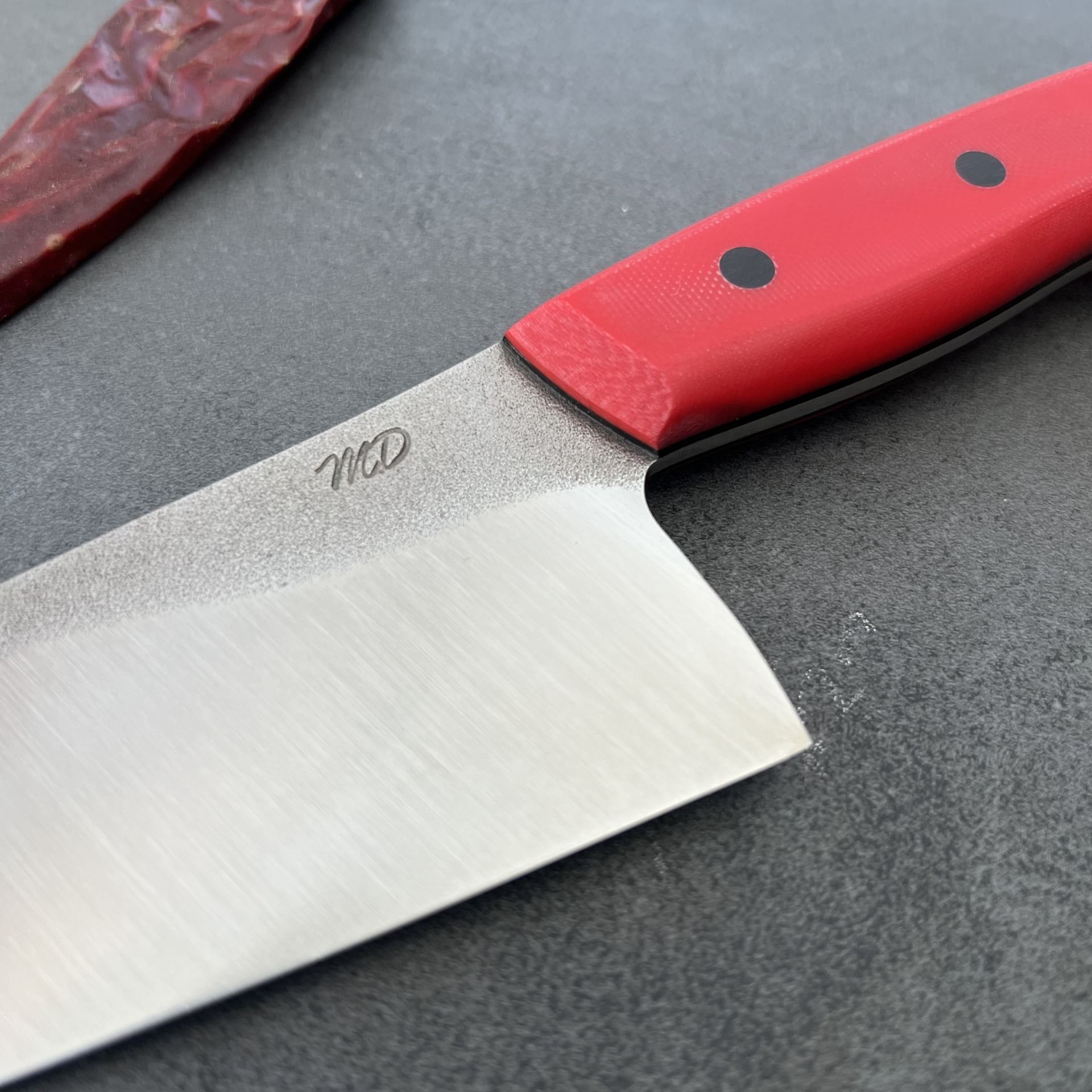 Tento nůž jsem navrhl pro maximální využití při každodenní práci v kuchyni. Široká a pevná čepel z oceli z prémiové oceli N690 vám umožní provádět dokonale čisté řezy skrz zeleninu, maso i ryby, aniž byste ztráceli kontrolu nad hloubkou řezu. Je to nástroj pro kuchaře, gurmány i domácí nadšence, kteří vyžadují ostrost a chtějí mít každý pohyb nože po prkýnku plně pod kontrolou.