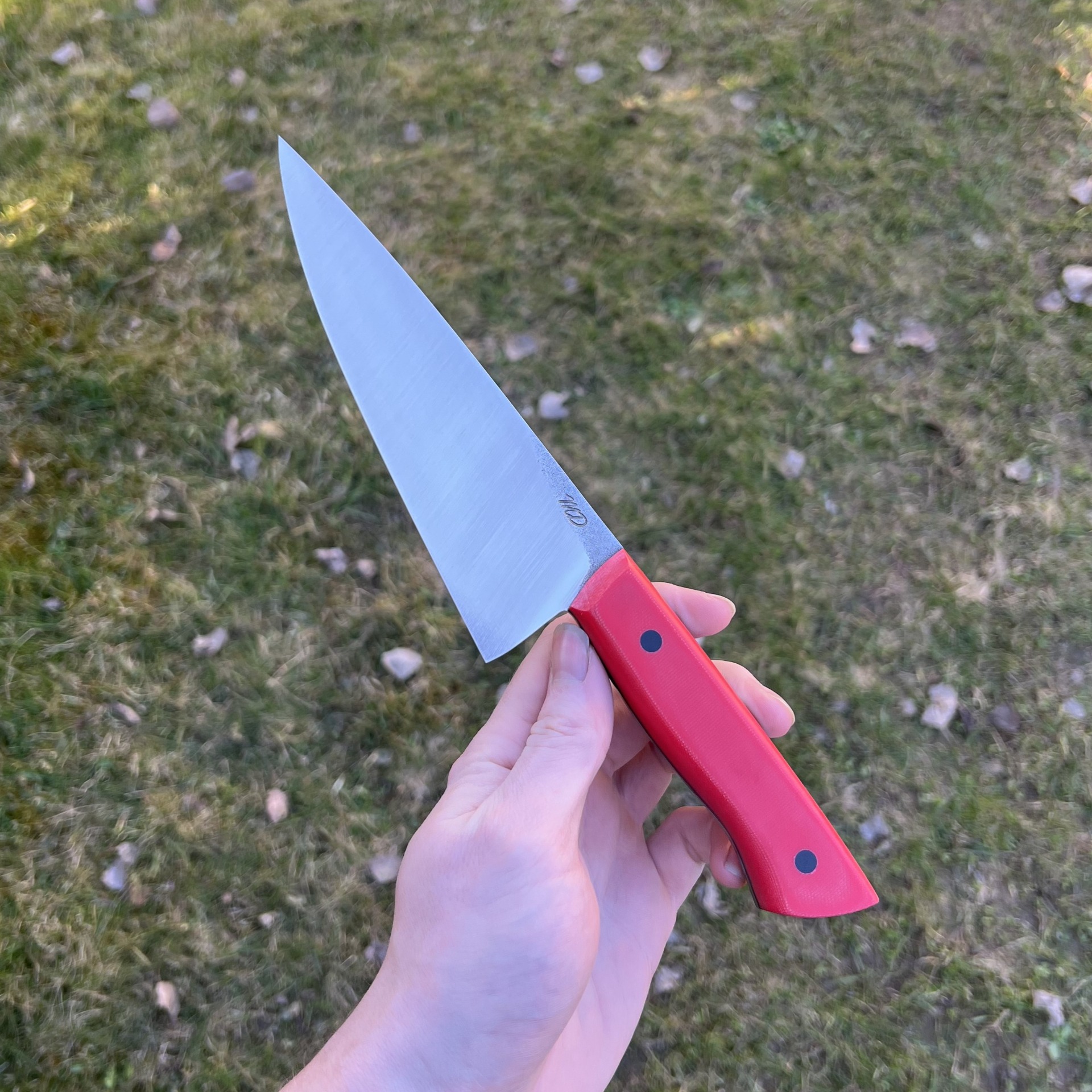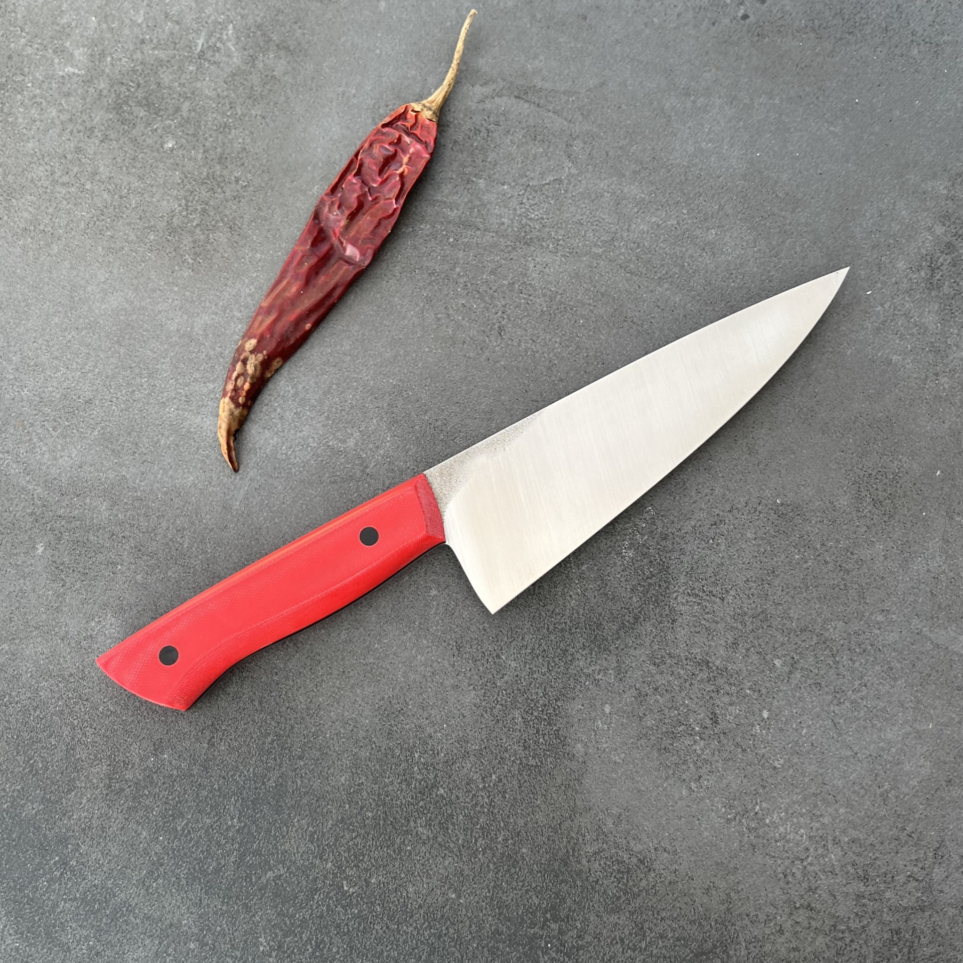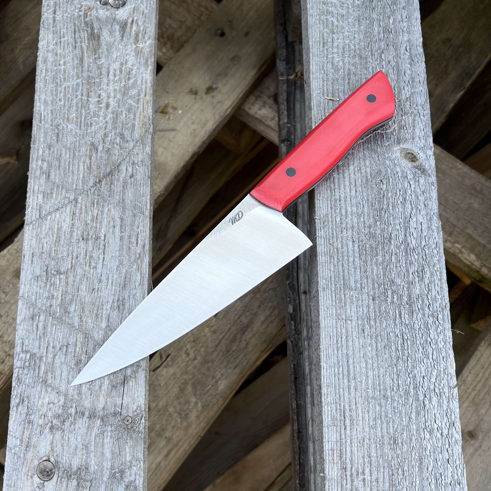 Tento nůž jsem navrhl pro maximální využití při každodenní práci v kuchyni. Široká a pevná čepel z oceli z prémiové oceli N690 vám umožní provádět dokonale čisté řezy skrz zeleninu, maso i ryby, aniž byste ztráceli kontrolu nad hloubkou řezu. Je to nástroj pro kuchaře, gurmány i domácí nadšence, kteří vyžadují ostrost a chtějí mít každý pohyb nože po prkýnku plně pod kontrolou.