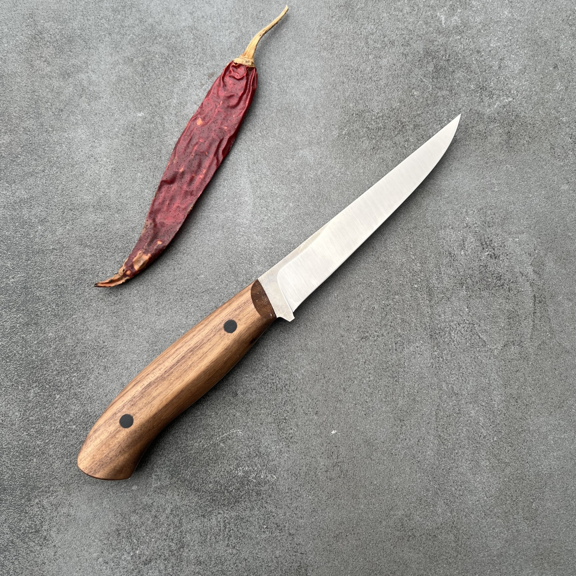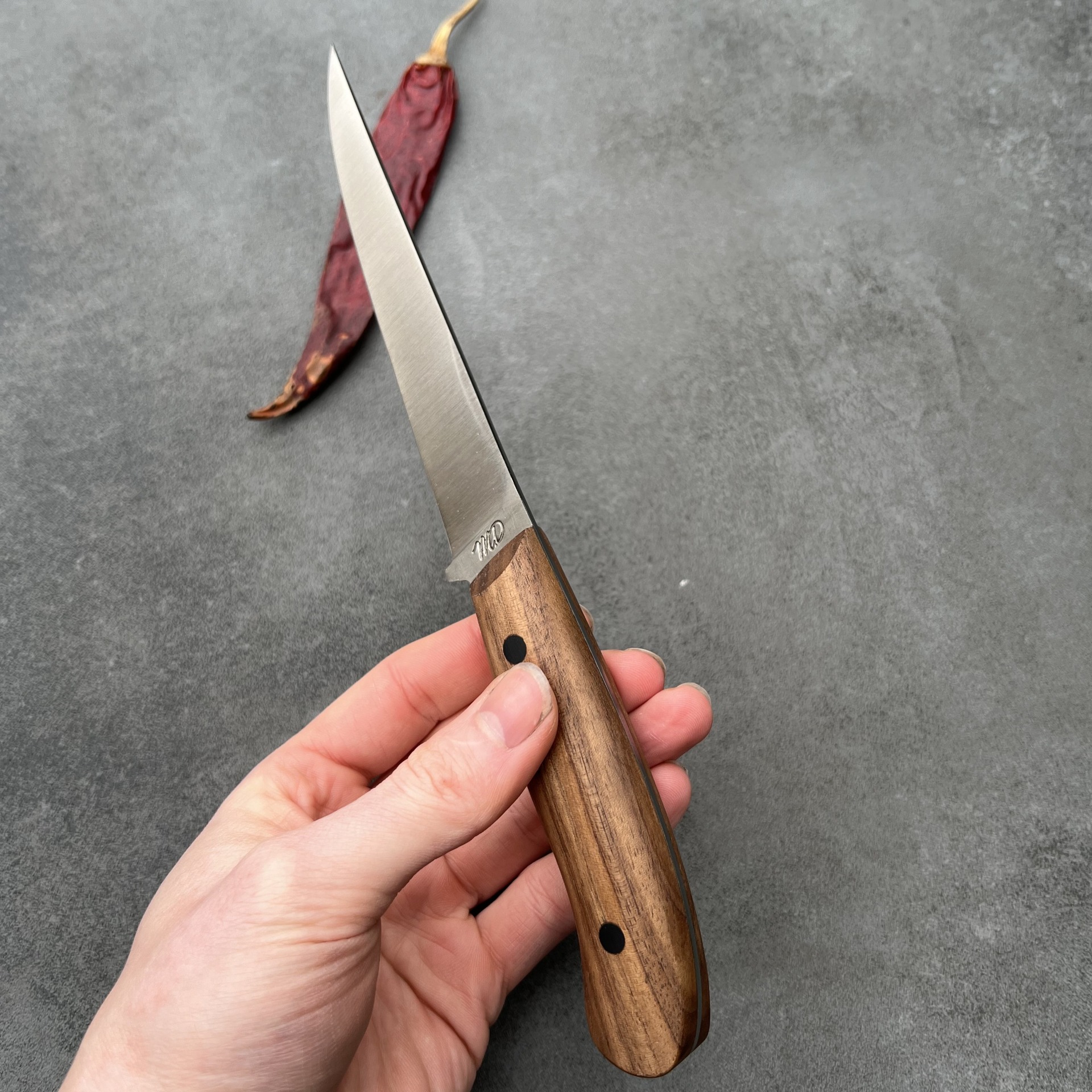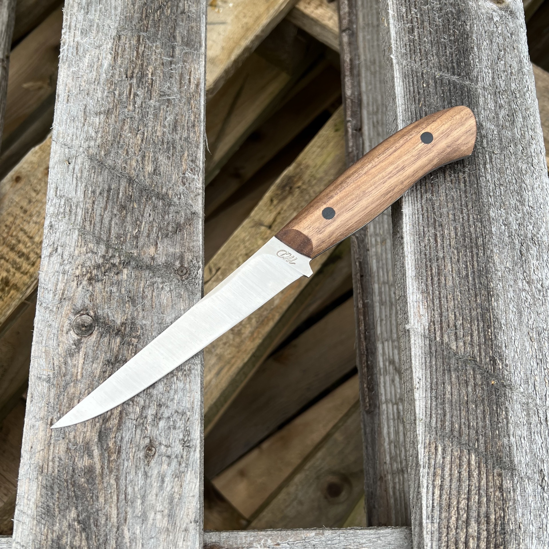 Tento nůž jsem navrhl pro nejnáročnější úkoly při zpracování masa. Úzká, tuhá čepel vám umožní precizní práci kolem kostí, chrupavek a šlach, aniž byste plýtvali surovinou. Je to nástroj pro řezníky, lovce i domácí nadšence, kteří chtějí mít zpracování masa plně pod kontrolou.
